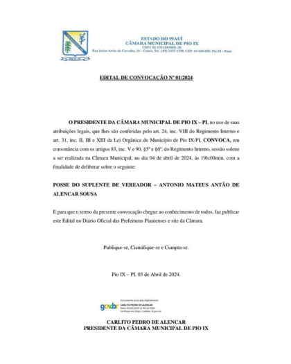 EDITAL DE CONVOCAÇÃO -SESSÃO SOLENE